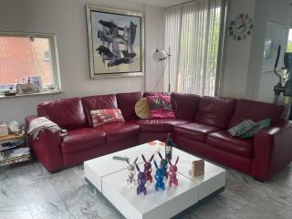 Mooie lichte woonkamer en keuken met uitzicht aan 3 kanten.