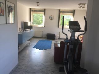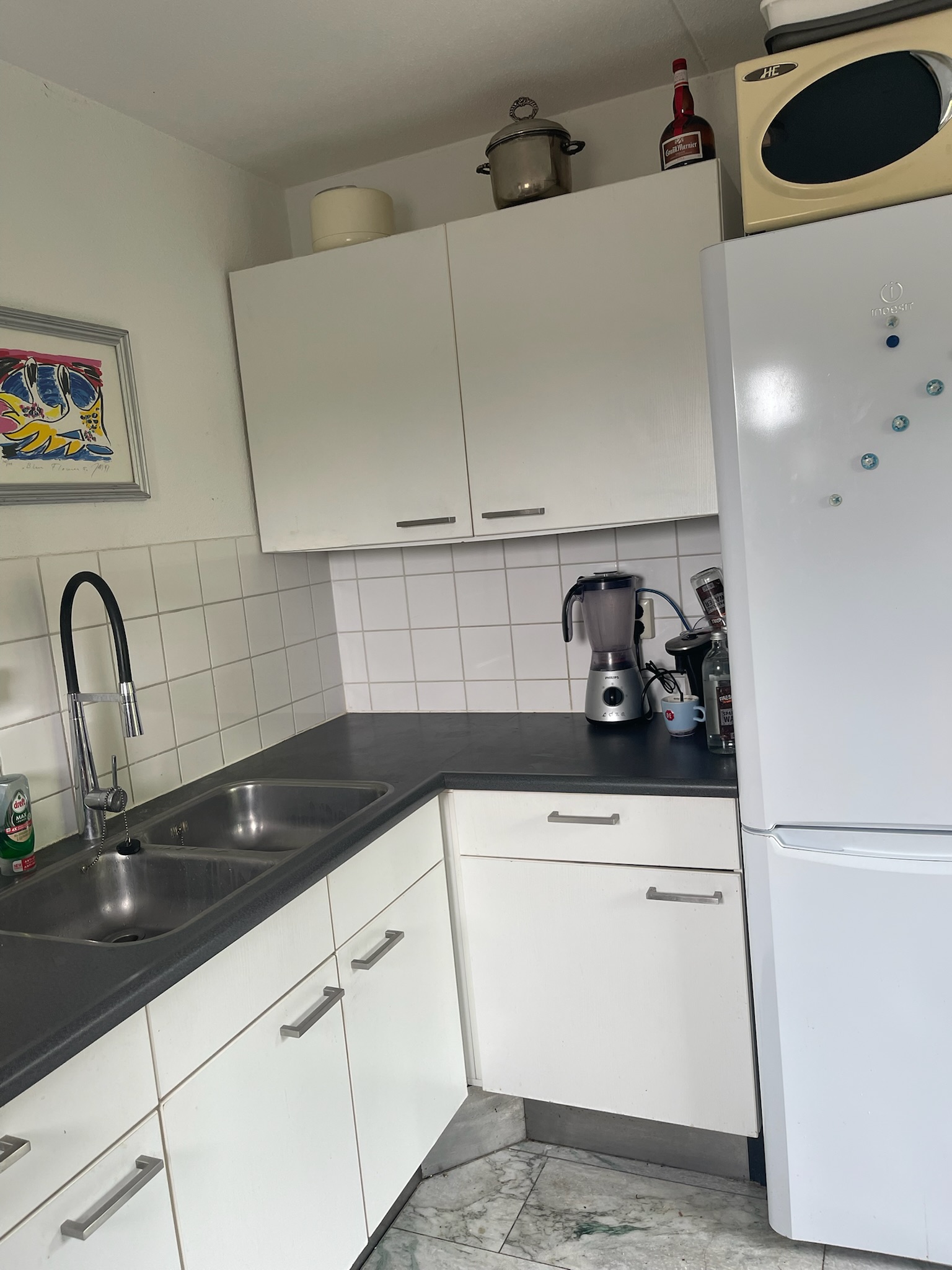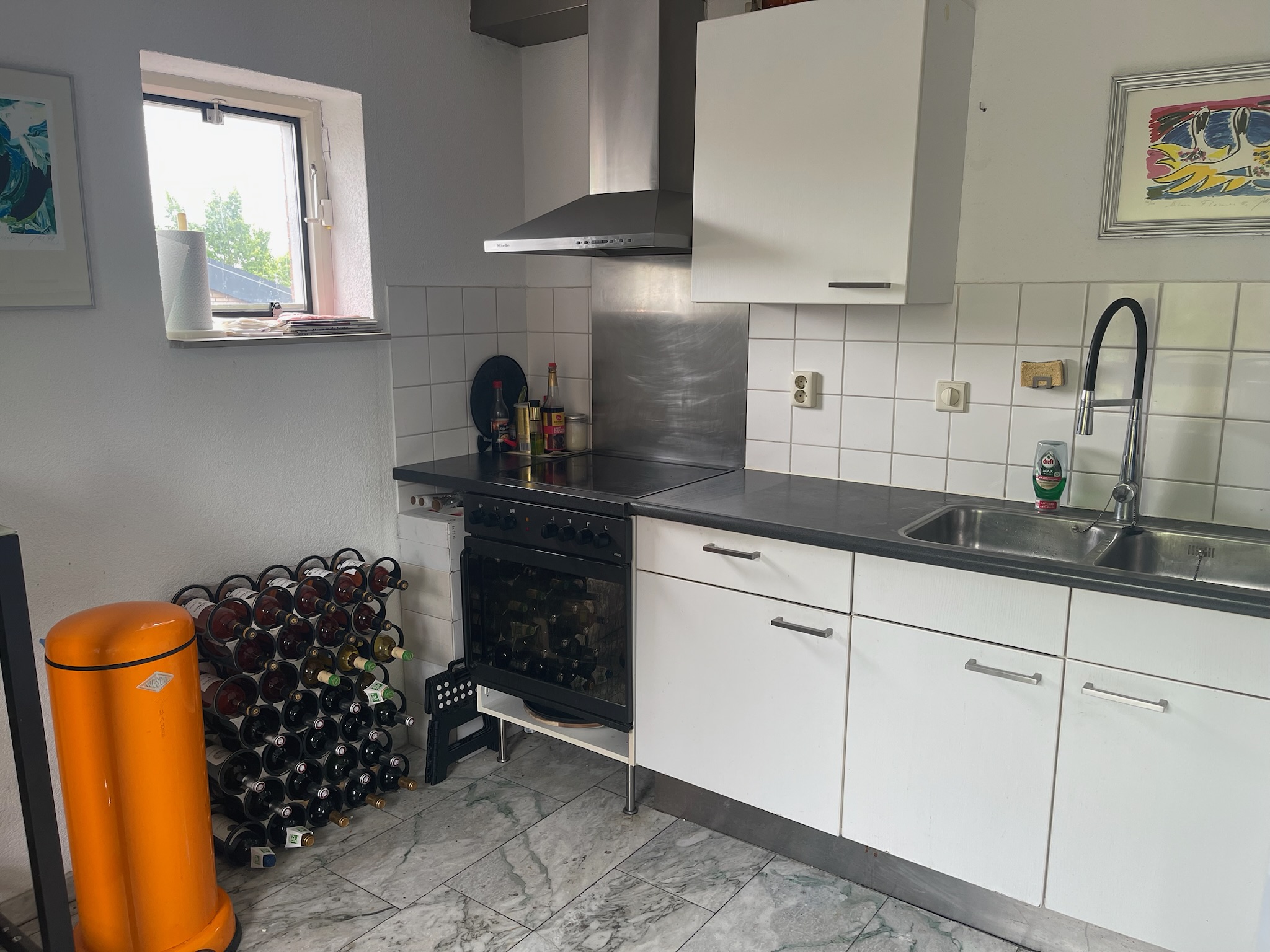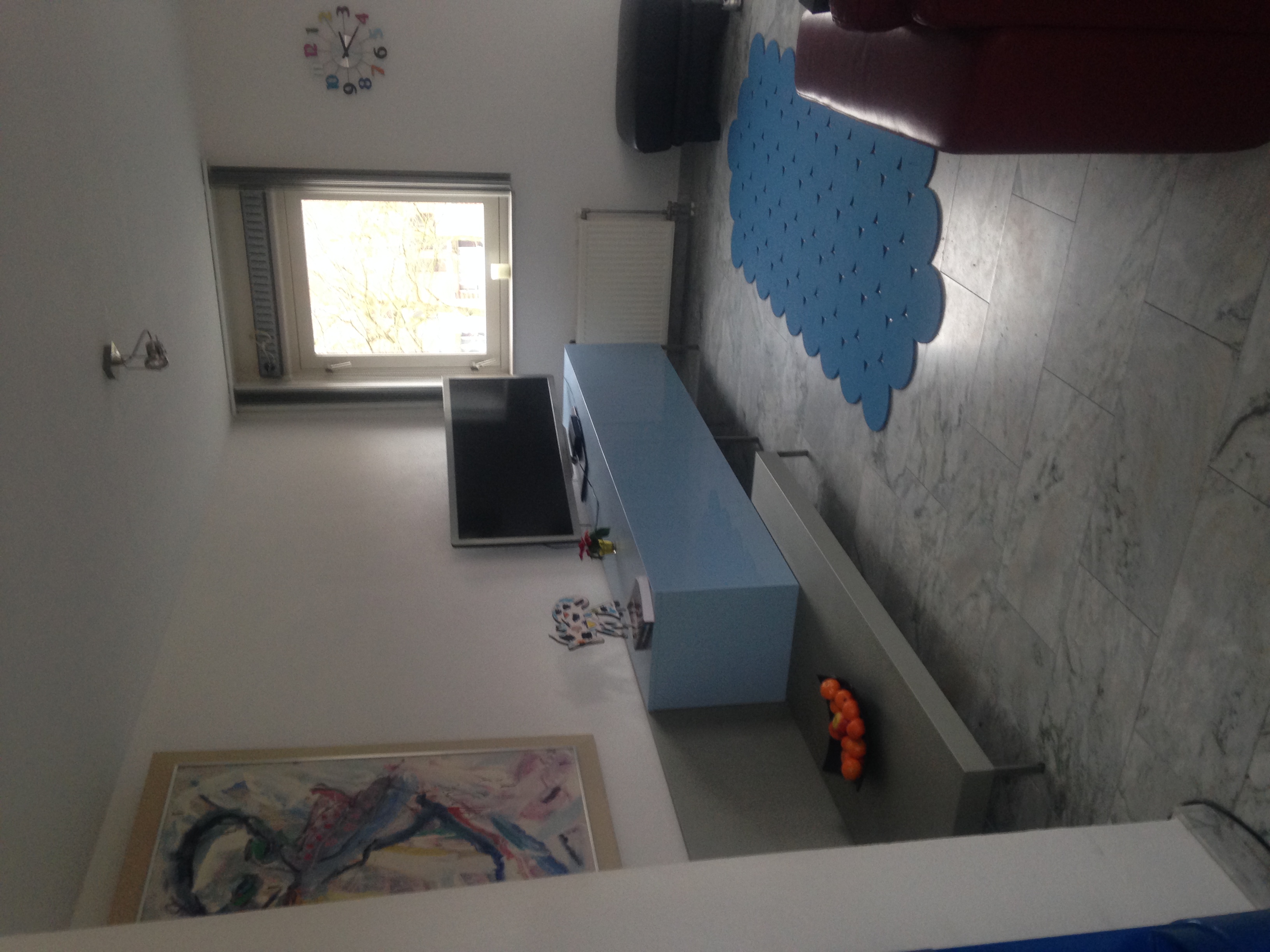 Woonkamer 26m2 met open keuken 11m2 en voorzien van een marmeren vloer met vloerverwarming . Het geheel word verder verwarmd dmv stadsverwarming.